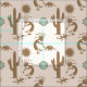 Fun Southwest pattern in small print version with Kokopelli playing flute, cactus, lizards and armadillo under a stylised sun. Blush pink background. Design is part of the Southwest Pastels collection. For more accurate vibrant view of this design click on the end tile preview.