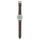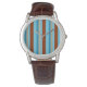 I was uncertain about the size being too small but it looks good. The case looks like aluminum (not shiny) and the time is easy to see. I changed the band because the leather doesn't go with my lifestyle.a. Exactly what I expected, nice yellow. It grabs peoples attention.