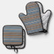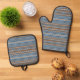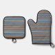 Southwest Style Blue and Brown Geometric Pattern Oven Mitt & Pot Holder Set