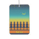 Personalise this air freshener with your own initials or monogram on a design inspired by the beautiful sunset skies and tall Ponderosa Pines of Arizona, this original artwork features a glowing orange, yellow and blue sunset sky behind geometic ponderosa trees with stars and a crescent moon.