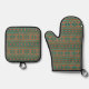 Southwest Teal Copper Colours Geometric Pattern Oven Mitt & Pot Holder Set
