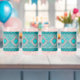 Inspired by the beautiful Turquoise "Sky Stone" mined in the Southwest, this original design features a turquoise and silver-grey background accented with printed geometric patterns.