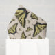 This artwork features the black and yellow Western Swallowtail butterfly, one of the most beautiful large butterflies in the southwest. The original art is based on photographs the artist took in her own butterfly-friendly garden in Arizona. This design features the butterfly art in an all-over pattern on a background of beige with flecks of red and blue.