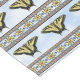 This design is of black and yellow Western Swallowtail butterflies, some of the most beautiful large butterflies in the world, floating on a blue sky with puffy white couds. Bordered with southwest style geometric butterfly symbols.My original painting is based on photographs I took in my own butterfly-friendly garden in the Southwest.