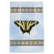 This design is of a black and yellow Western Swallowtail butterfly, one of the most beautiful large butterflies in the world, floating on a blue sky with puffy white couds. My original painting is based on photographs I took in my own butterfly-friendly garden in the Southwest.