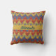 Lovely Aztec inspired, geometric design decorates this throw pillow in blue red and gold. Personalise with your/recipient name and add some ethnic panache to your home decor!
