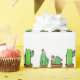 Three cute cacti with pink flowers in little terra cotta pots- a fun south western design!
