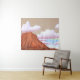 Tapestry in a boho / minimalist style illustration of a Southwestern desert scene with a red rock mesa and clouds