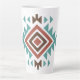 A Southwestern-style geometric pattern featuring layered diamond shapes in warm terracotta, deep brown, and cool turquoise tones. The distressed texture gives it a vintage feel, while the symmetrical layout adds a clean and modern touch.