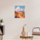 Journey through the beauty of the open desert with this Southwestern matte poster print. Featuring a winding road surrounded by vibrant red cliffs, golden sand, and tall saguaro cacti, this artwork captures the peace and warmth of desert life.