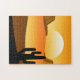 Puzzle in a minimalist, modern landscape of the Southeastern desert and mesas, in shades of orange, golden yellow, and brown