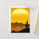 Postcard in a minimalist, modern landscape of the Southwestern desert and mountains, in shades of orange, golden yellow, and brown