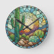 Add a touch of the serene southwestern desert to your home with this exquisite wall clock, featuring a vibrant stained glass style design. Crafted with attention to detail, the clock depicts a stunning scene of a cactus against a colourful sunset, evoking the beauty of a tranquil desert landscape. Perfect for adding a bit of bohemian flair to your kitchen, office, or living space, this clock combines functionality with artistry. It's fitted with a silent movement mechanism, ensuring no ticking noise disturbs your peace.