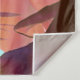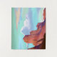 Tapestry in a boho / minimalist style illustration of a Southwestern desert scene of terracotta mountain peaks with an aqua sky