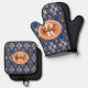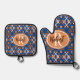 Infuse your kitchen with Southwestern charm using our Aztec-inspired oven mitt and pot holder set. Featuring a striking geometric tribal pattern in neutral tones against a deep blue backdrop, this set adds a bold visual appeal to your cooking space. Customise the background colour to perfectly match your décor and add your initial and name for a truly personalised touch. Elevate your kitchen's style while enjoying the practicality and unique design of this must-have set. Treat yourself or gift it to someone special for a blend of functionality and Southwestern flair.