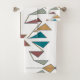 Bath Towel Set Of Three, bathroom amenity and home furnishing decor accessory with Southwestern Oblique Triangle Design artwork design image by TheFabricSeal at Zazzle is a simple but effective display of shapes, lines and colours inspired by the art styles from the Southwest desert and Indian influences of the America’s. Native, tribal, earth tone shades of colours. Rustic colour palette with Turquoise, green, rust, copper, red, creamy yellow, avocado green, cream tan and gun metal dark grey are utilised here. Triangular and arrowhead shapes with connecting line work throughout.