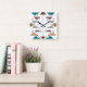 Square Wall Clock, wall art decor and home furnishing decor accessory with Southwestern Oblique Triangle Design artwork design image by TheFabricSeal at Zazzle is a simple but effective display of shapes, lines and colours inspired by the art styles from the Southwest desert and Indian influences of the America’s. Native, tribal, earth tone shades of colours. Rustic colour palette with Turquoise, green, rust, copper, red, creamy yellow, avocado green, cream tan and gun metal dark grey are utilised here. Triangular and arrowhead shapes with connecting line work throughout.
