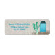 This return address label features a mixed photography and digital art design with blue double doors and a saguaro cactus on the right and new address on the left. Personalise it in the template field with your details. In customise, you can select a typeface style, colour, and size you prefer.