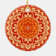 Southwestern Sun Mandala Batik, Coral Orange Ceramic Tree Decoration