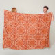 Fleece blanket in a Southwestern / Aztec inspired batik textile design in a sun dial / mandala pattern - deep coral orange and pastel orange, accented with deep mandarin orange