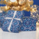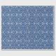 Southwestern / Aztec inspired batik textile design wrapping paper in a sun dial / mandala pattern - navy / indigo blue and white, accented with cerulean blue