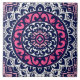 Southwestern / Aztec inspired batik textile design ceramic tile in a sun dial / mandala pattern - navy / indigo blue and white, accented with deep fuchsia pink