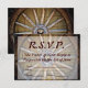 This southwestern themed wedding RSVP Card features a rustic wagon wheel on both sides of the invitation. Just add your own wedding RSVP wording to this template. Matching southwestern country style wagon wheel wedding invitation is also available here: