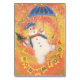 Soviet retro snowman with spruce tree and umbrella