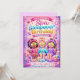 Design: Vibrant pink, purple, and teal colors with sparkly accents.