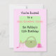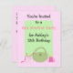 A stylish pink and green spa party invitation. Accessories and perfume bottles in green and pink shades. Customise with all of your party information as desired.