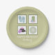 Birthday party plates featuring a spa themed design with illustrations of flip flops, candles, spa stones with orchids, and a cucumber slice. Personalise the text. Matching napkins, invitations, and more are available at Jill's Paperie.