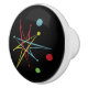 This ceramic knob is embellished with a cool Mid Century Space Age atomic inspired motif and colourful dots. All four hues and the background may be edited for a customised look.