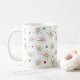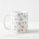 A cool Mid Century Space Age atomic inspired motif interspersed with random dots in a colourful pattern decorates this mug. All four colours and the background may be edited for a custom look.