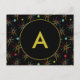 This easily personalised postcard is embellished with a Mid Century Space Age atomic inspired motif interspersed with random dots in a colourful pattern along with a coordinating monogram on front and customised save the date text on the back. All elements of this design may be edited with your choice of colour..