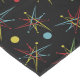 This colourful tablecloth features a Mid Century Space Age atomic inspired motif interspersed with random dots in a lively pattern. All four colours and the background may be edited for a custom look.