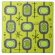 This atomic era styled mid century modern abstract art has circles, lines and sputnik starbursts. For lovers of midcentury kitsch designs. Yellow-green.