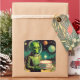 Space Alien with Birthday Cake UFO Flying Saucer Square Sticker