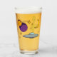 Create an out-of-this-world personalised gift. This pint glass features illustrations of lime green space aliens, a ufo or flying saucer, stars, a moon and planets and is ready to be personalised with a name.