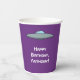 Throw an out-of-this-world birthday party with these custom paper cups featuring an illustration of a lime green space alien holding a pair of planet-shaped balloons. Your personalised message appears on the back of the cups beneath a flying saucer graphic.