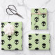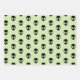 Space Alien Wrapping Paper Flat Sheet Set of 3. This alien wrapping paper features black alien heads on green. It's the perfect touch if you're giving a gift to someone interested in space aliens, ufos, flying saucers, extraterrestrial life, ufology or someone who is a ufologist. Make it a little more spacey with alien gift wrap!