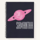 A cute illustration of Saturn in pink with the name or word of your choice in a tall, trendy sophisticated font on a navy blue background. Background colour can be changed.