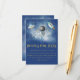 Featuring a cute cosmic boy Astronaut with stars, galaxy dust, spaceship, rocket, shooting stars, telescope .On blue universe background backside staying on a magical moon with gold flag