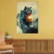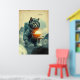 Space Cat Dreams on Mushroom Moon Poster