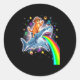 Space Cowboy Cat Riding Shark Rainbow Xel Art Classic Round Sticker