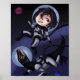 Dressed in their astronaunt suits, a girl and her dinosaur explore space! This is drawn in the anime chibi style!