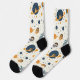 A white pattern-based sock design with space themed drawings. Great for cosy moments and sci-fi lovers.