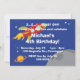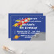This fun birthday party invitation features a rocket spaceship flying by some planets in outer space. Completely customisable.