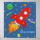 Personalize this space themed poster with your child's name on it. Bright and colorful, it's a great addition to any child's room. Original artwork by Night Owl's Menagerie, 2010.