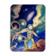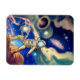 Custom magnet featuring an artistic illustration of an astronaut in space surrounded by galaxies and nebula.