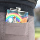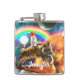 Space Galaxy Cat Riding Tiger on Pizza Hip Flask